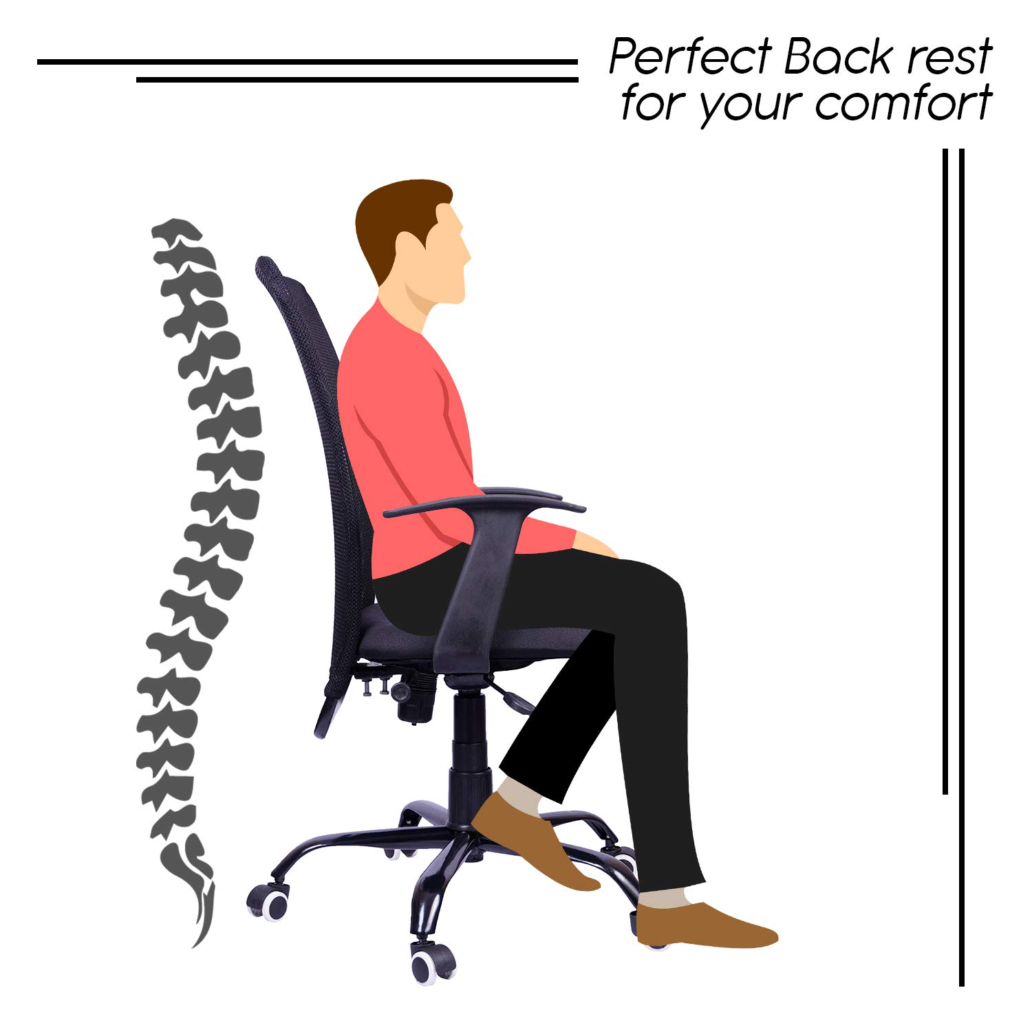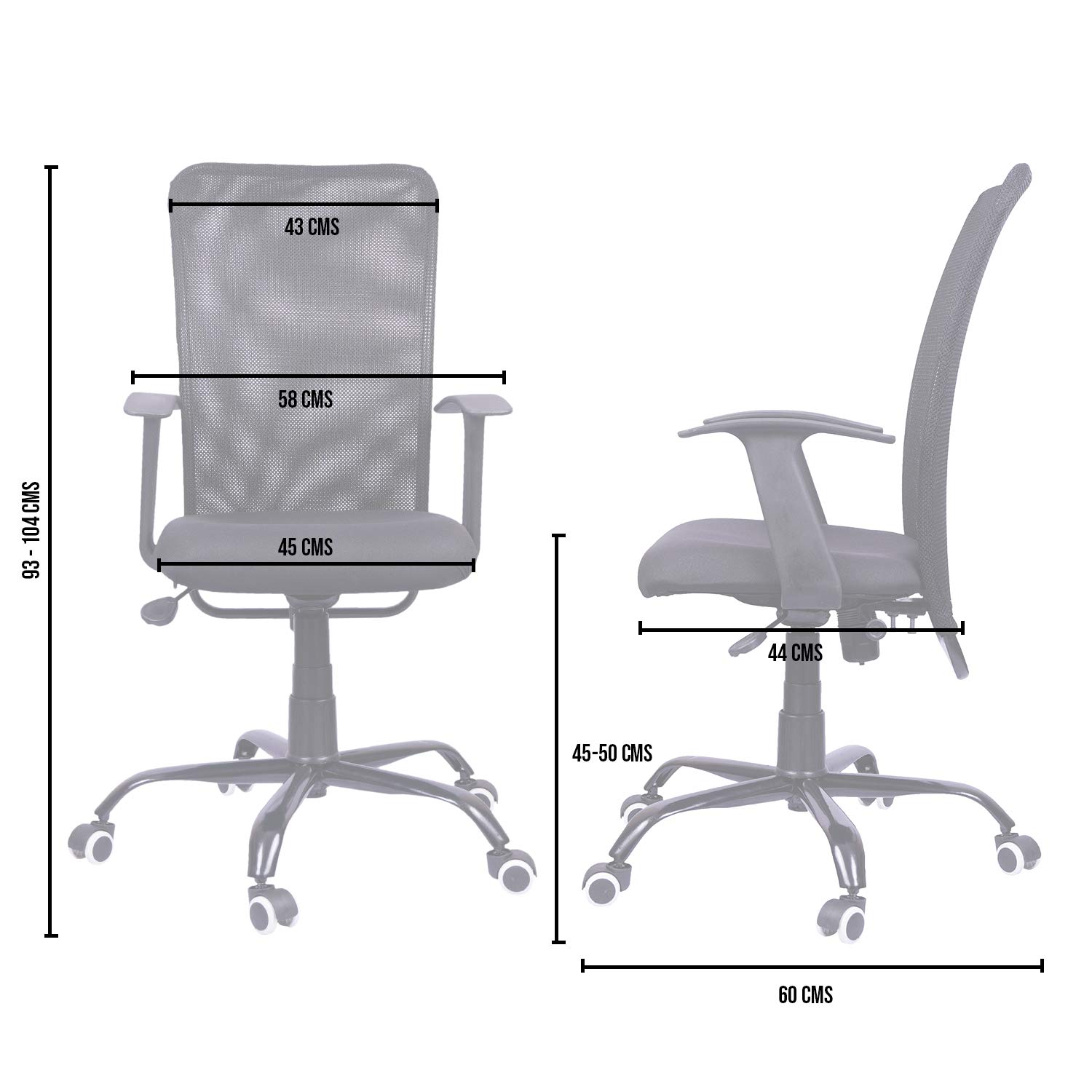 - PRODUCT DESIGN: Focused only on Comfort & Durability. Internal frame material is of Iron with Upholstery cover of Mesh along with Fabric on the seat, back and armrests.